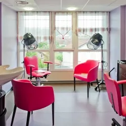 Ambiance familiale - personnel attentif. Salle de rééducation et personnel médical efficace. Des sorties régulières à l’extérieur (visite de monuments même pour les personnes à mobilité réduite). Cet établissement a redonner à ma mère le goût de vivre.