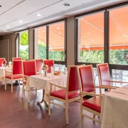 Les résidents bénéficient chaque jour d’une restauration savoureuse avec 5 repas (petit déjeuner, déjeuner, goûter, dîner et collation) servis, selon les souhaits des résidents, en chambre ou dans la salle de restaurant.